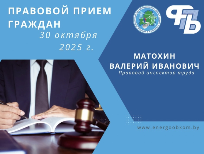 Правовой инспектор труда Минской областной организации Профсоюза Белэнерготопгаз Валерий Матохин будет проводить прием по следующим адресам: